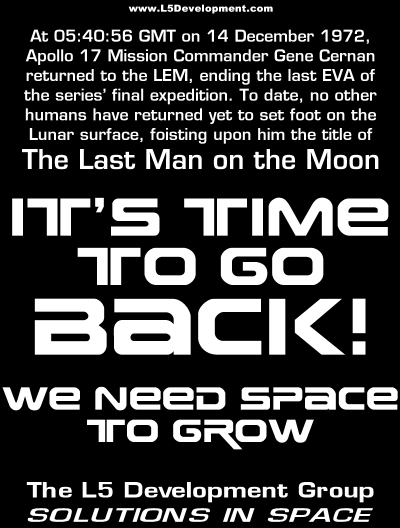 We here at The L5 Development Group, along with many other organizations, believe a return to a wider range of human space activities is long overdue. Consequently, we are making our rally call, saying